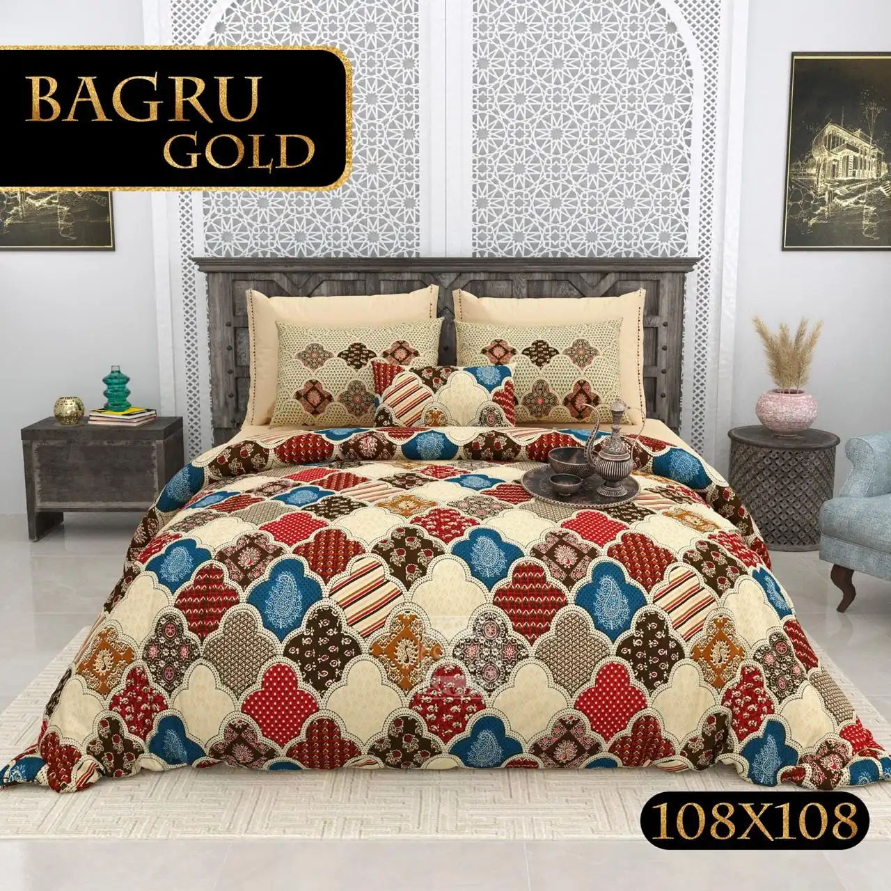 Bagru Gold Collection King Size Cotton Print Bedsheet – MP 16