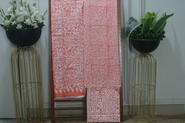 Hand Block Printed White Dress Material (Unstiched) – 105